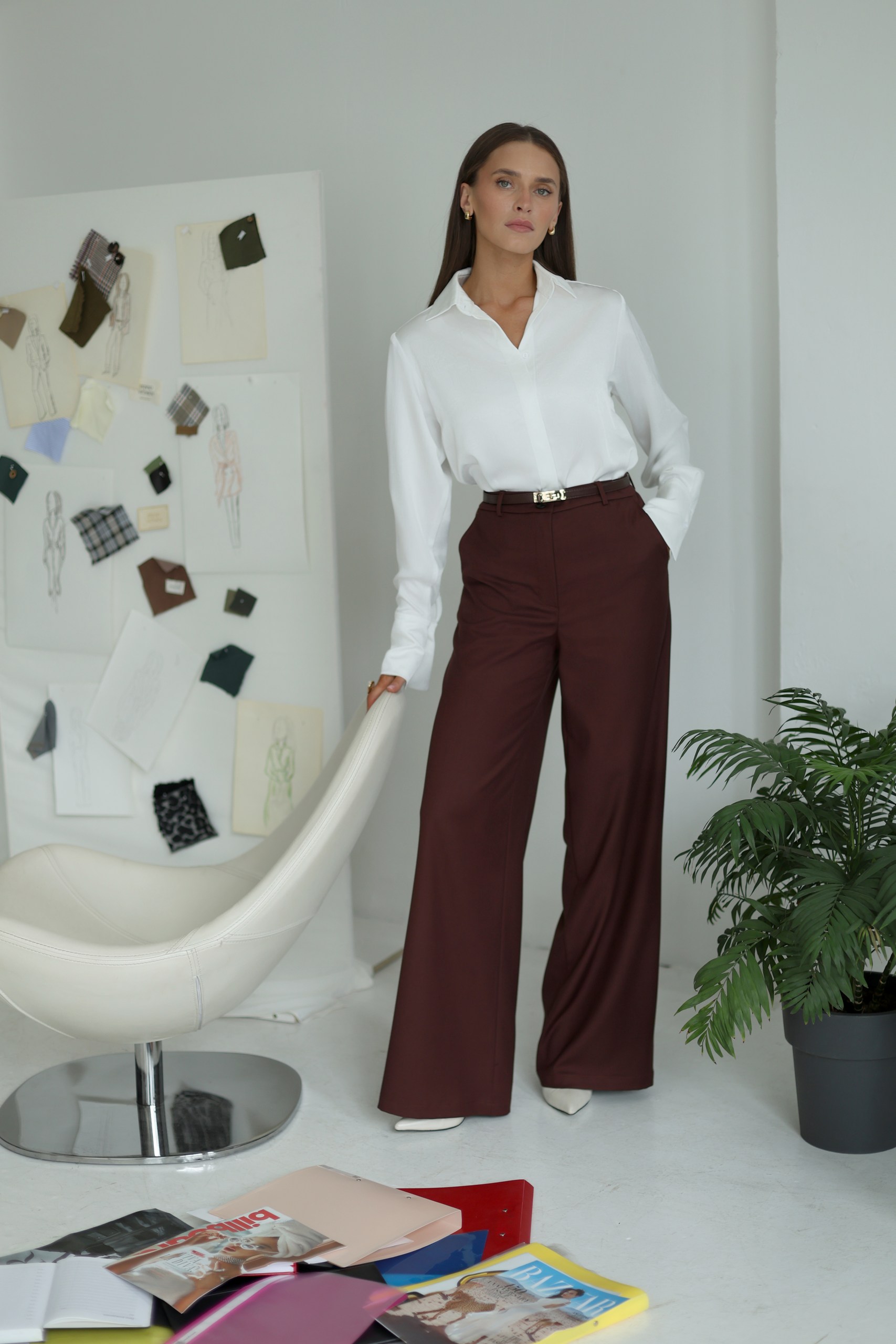 Брюки прямого кроя с карманами из костюмной ткани