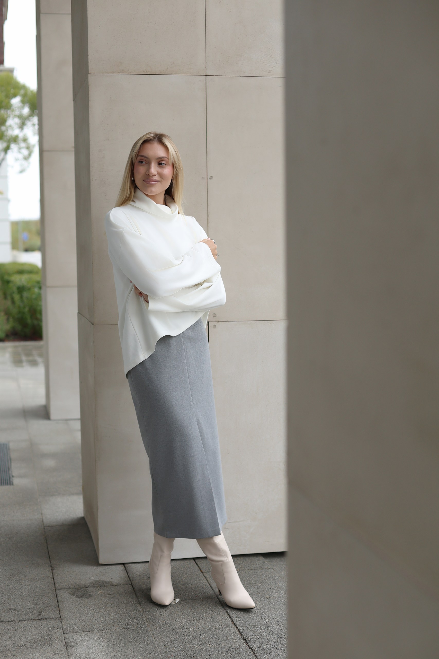 Юбка с разрезом спереди и декоративным кармашком из смесовой шерсти