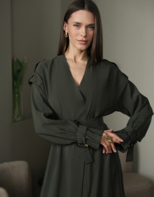 Особенности: боковые карманы, молния, потайная планка с кнопками, пояс в комплекте.