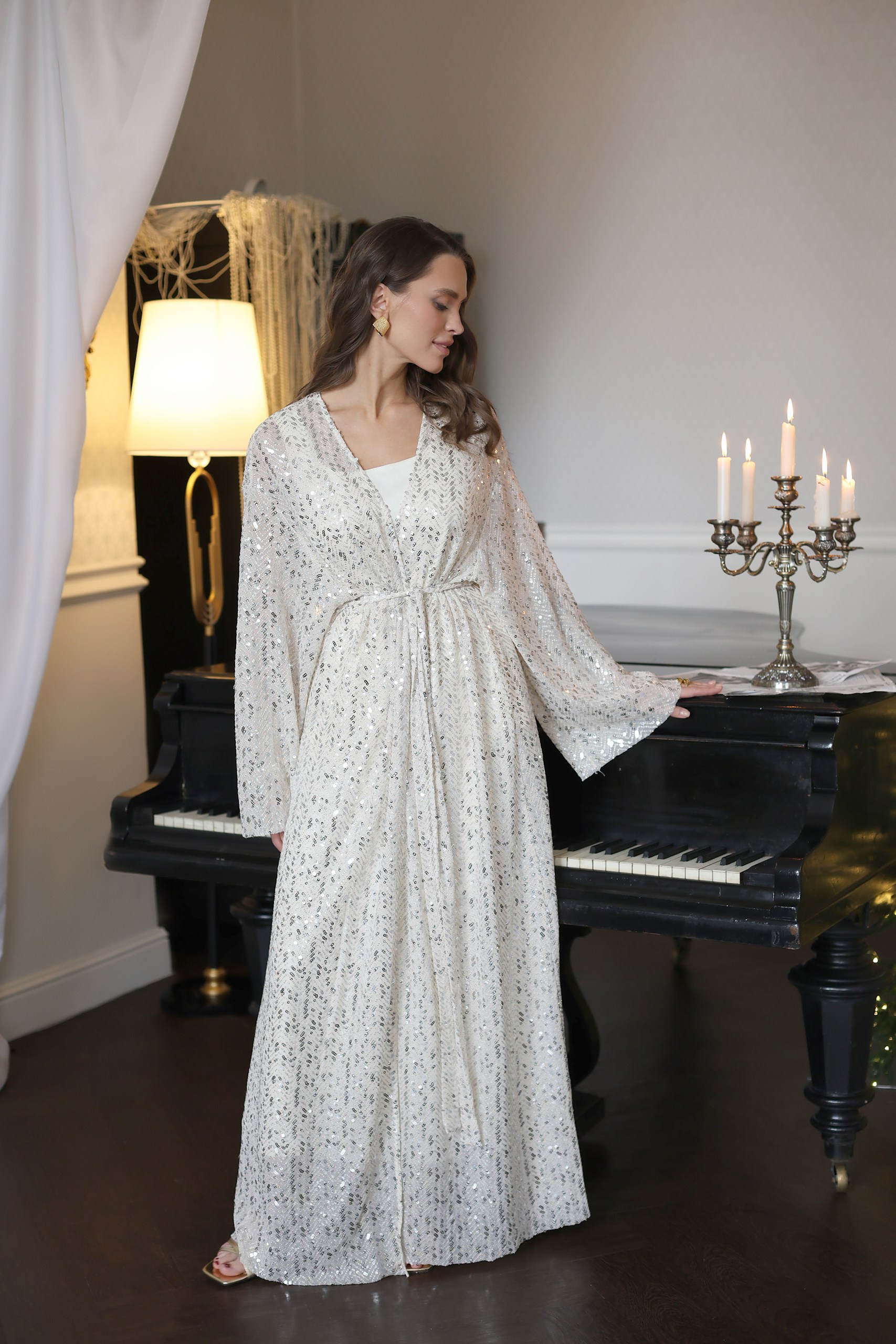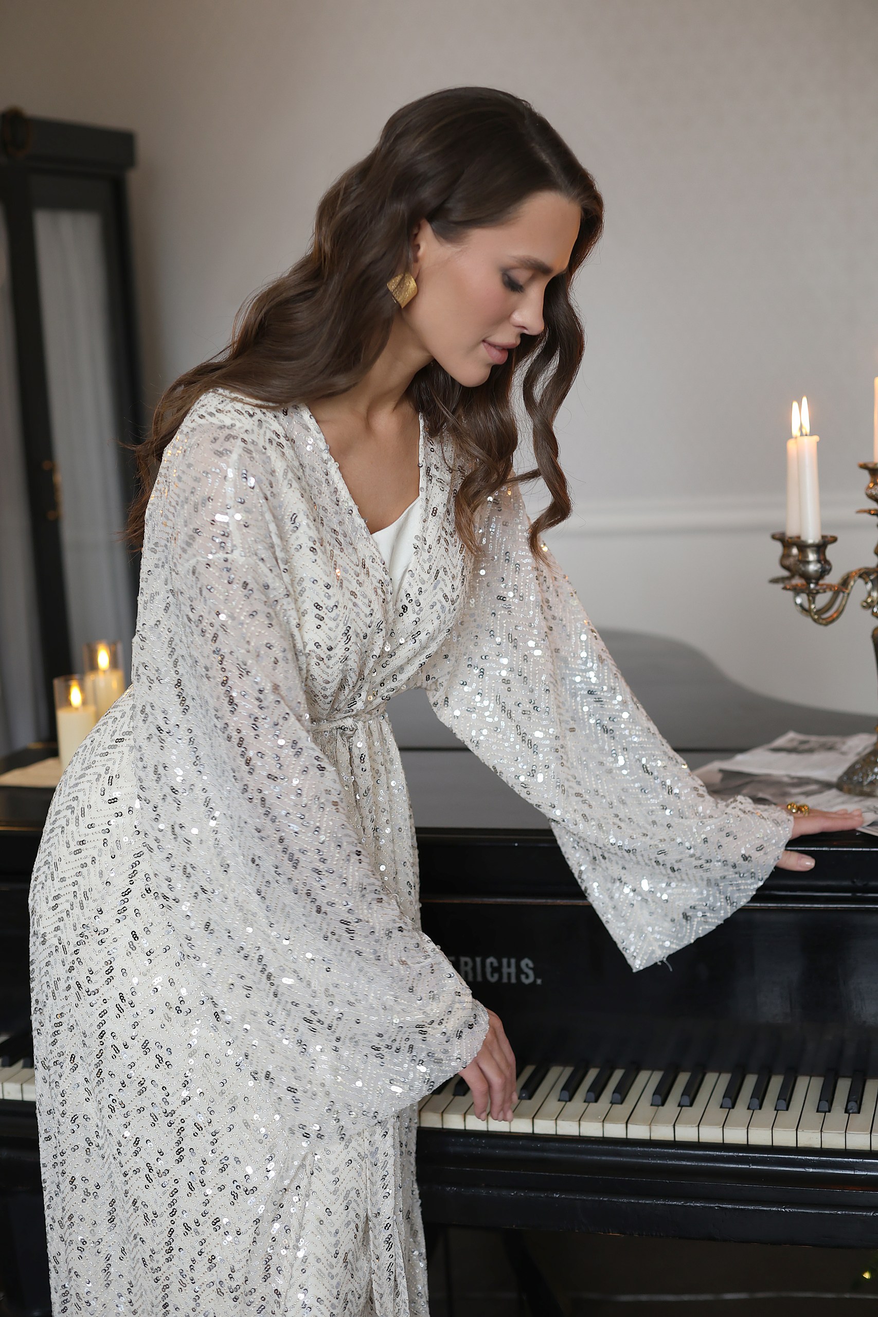 Накидка-кимано с паетками длины мидакси