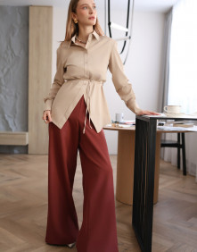 Особенности: отложной ворот, потайная планка с пуговицами, высокие манжеты, кокетка по спинке, высокие манжеты, вточной рукав