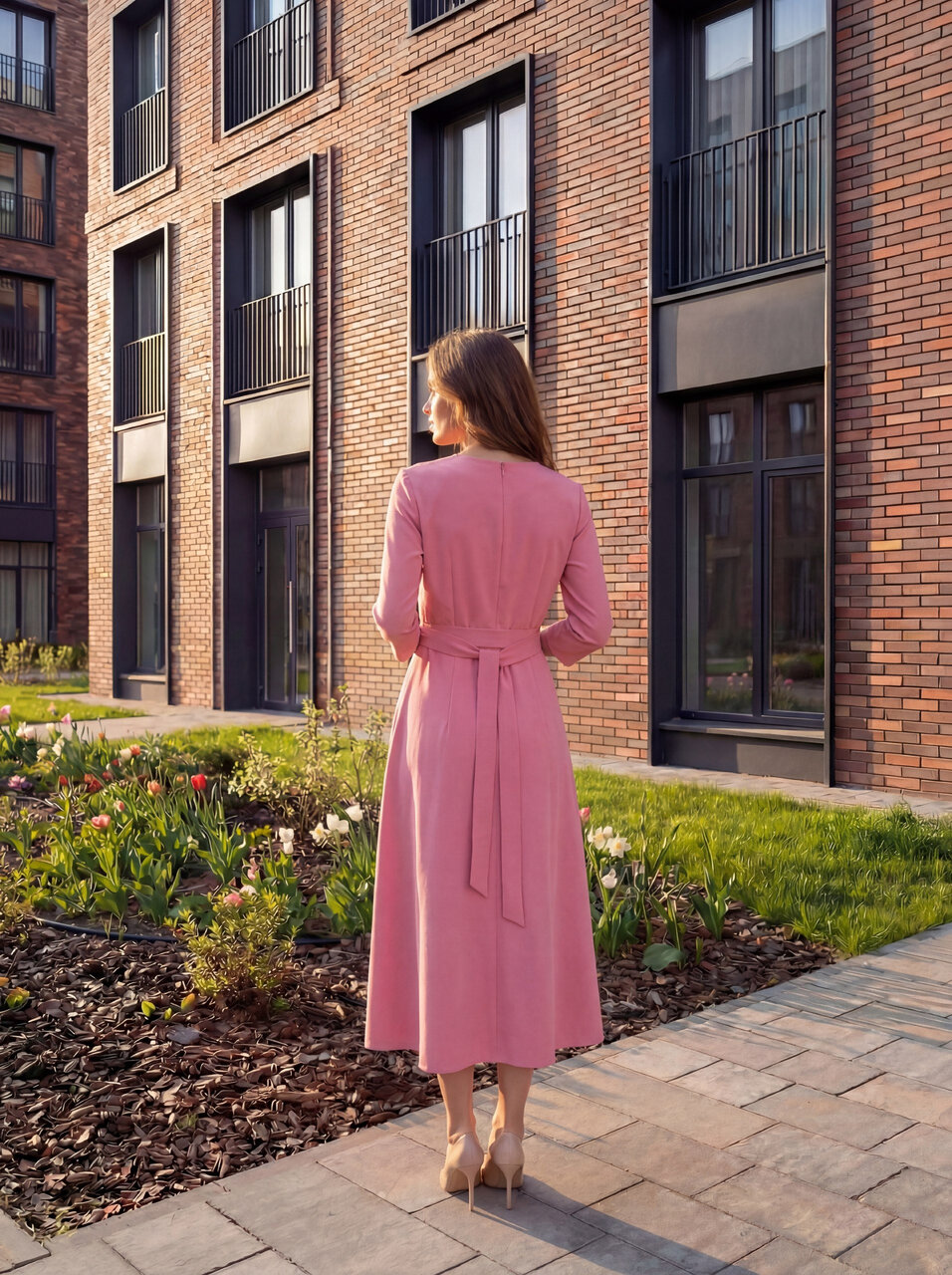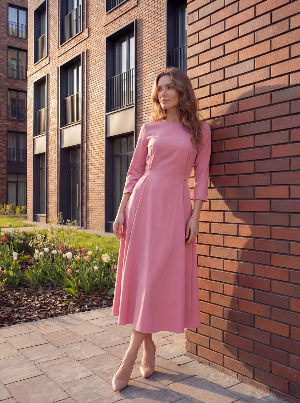 Воплощение нежности и классической элегантности. Это розовое платье миди создано для тех, кто ценит женственные силуэты в стиле New Look. Расклешенная юбка красиво двигается при ходьбе, а акцентный пояс позволяет создать безупречную посадку по фигуре.