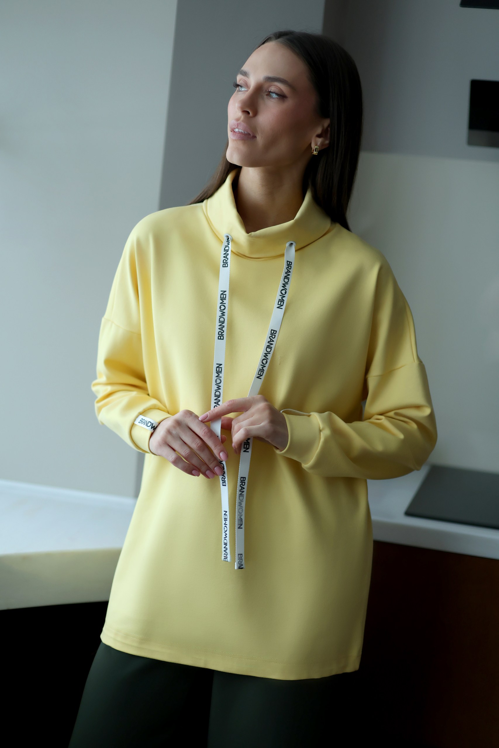 Свитшот на кулисе с воротом из смесовой вискозы