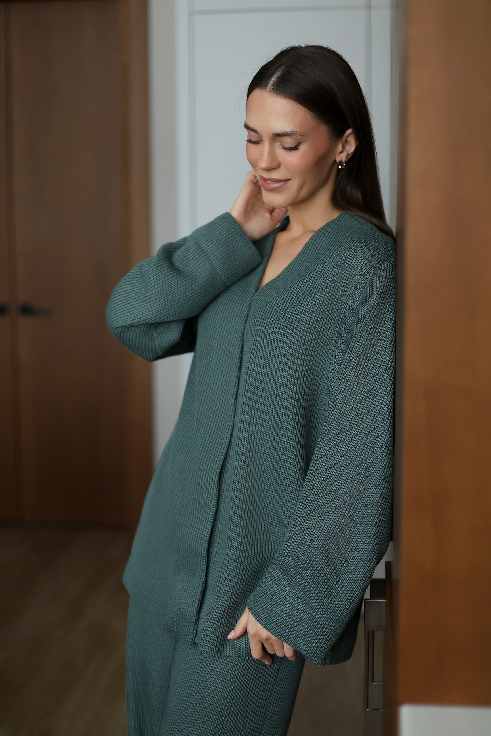 Комплект из кардигана и брюк из вязаного хлопкового трикотажа